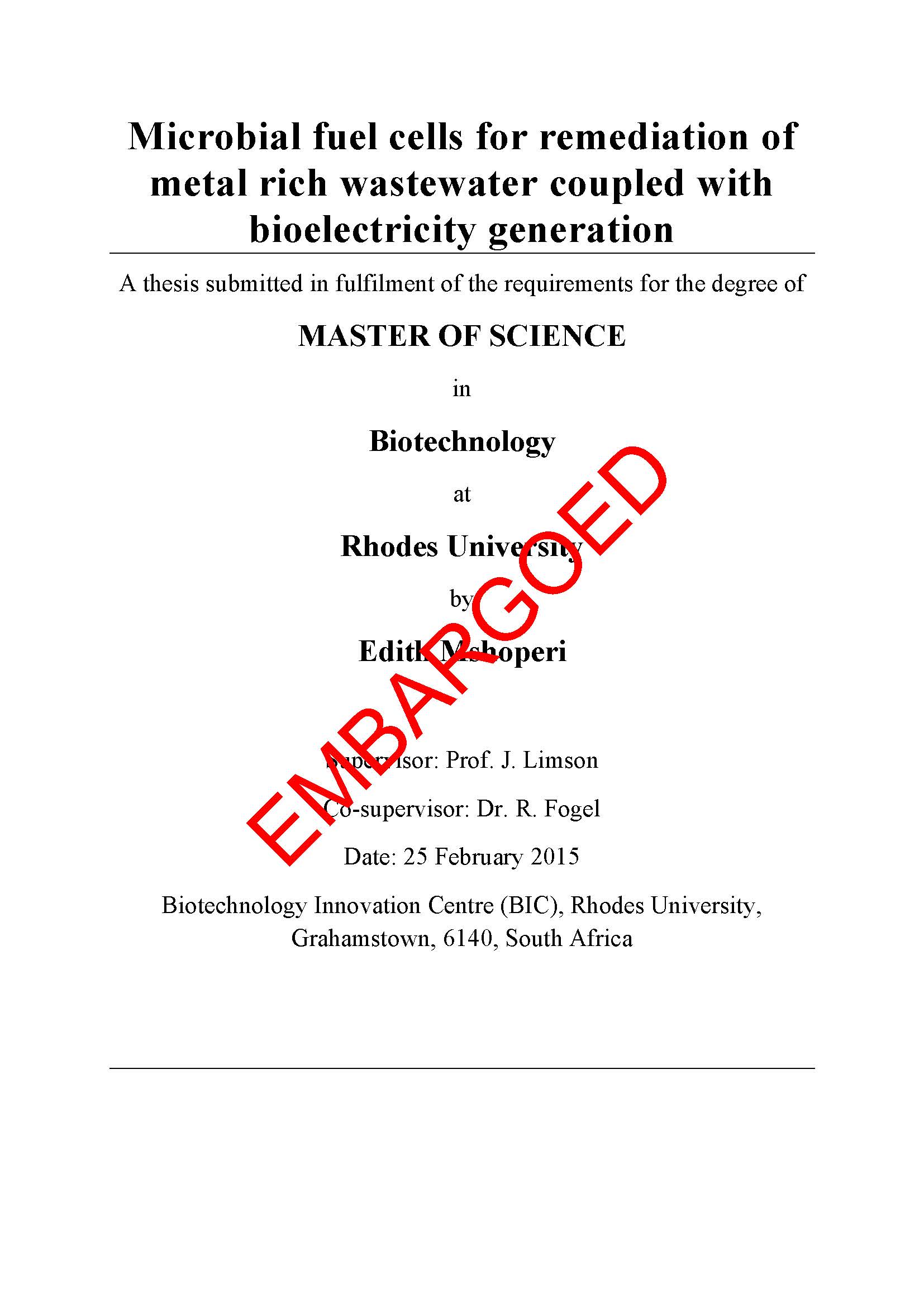 Microbial fuel cells for remediation of metal rich wastewater coupled with bioelectricity generation
