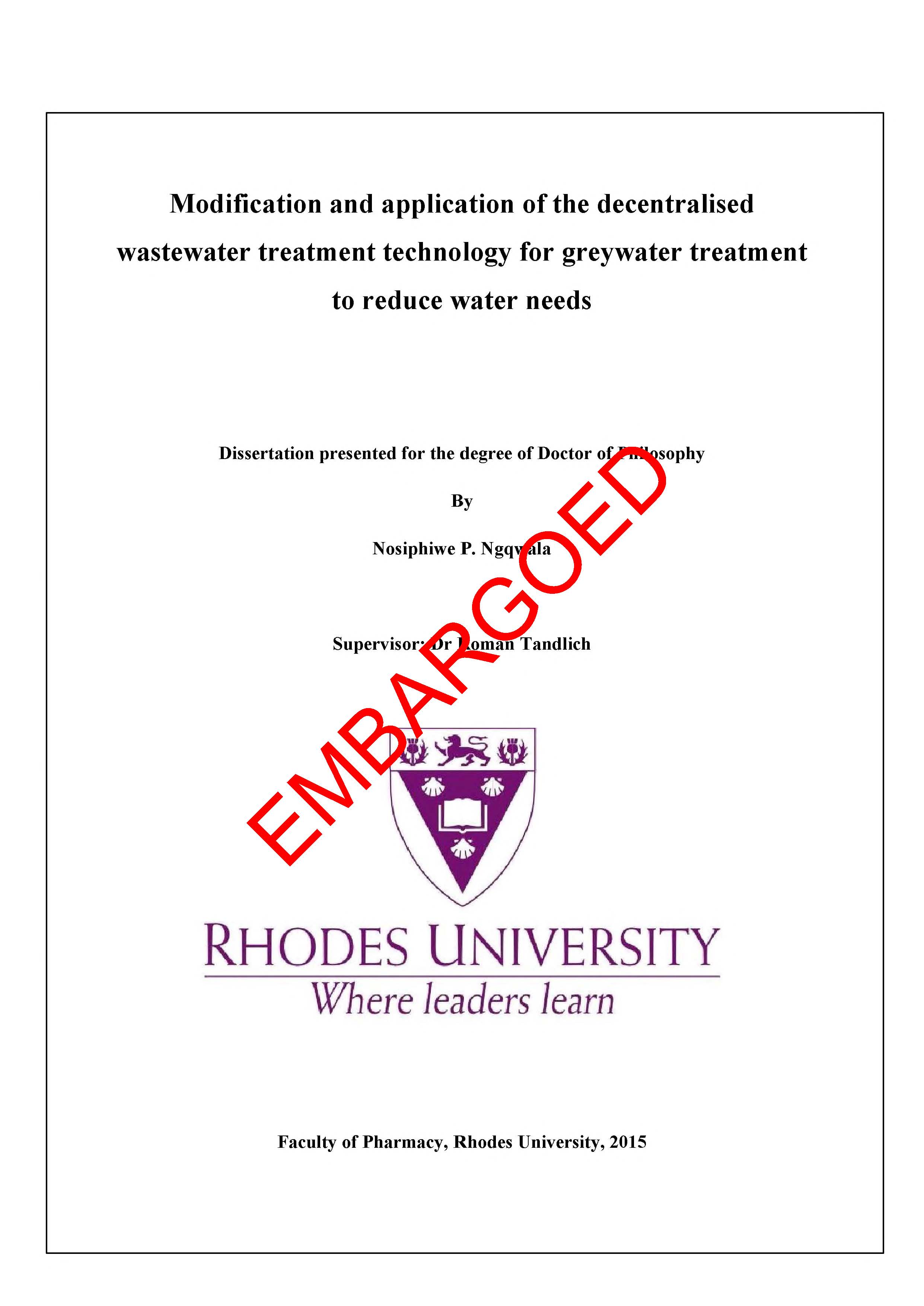 Modification and application of the decentralised wastewater treatment technology for greywater treatment to reduce water needs